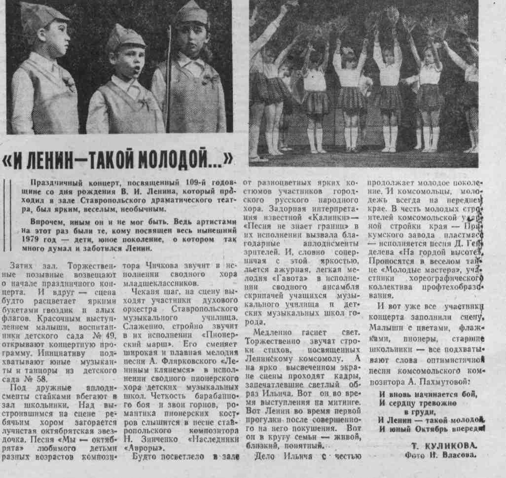 Куликова, Т. И Ленин - такой молодой / Т. Куликова // Молодой ленинец. – 1979. – 24 апр. – С.3.