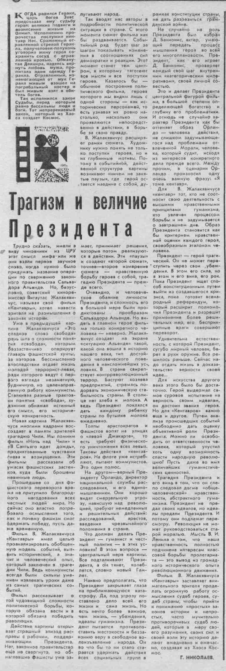 Николаев, Г. Трагизм и величие Президента / Г. Николаев // Молодой ленинец. – 1979. – 27 апр. – С.4. – (Кино).