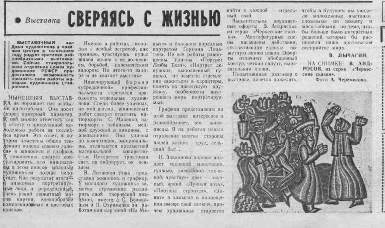 Лычагин, В. Сверяясь с жизнью / В. Лычагин // Молодой ленинец. – 1979. – 2 мая. – С.4. – (Завтра начинается всесоюзная вахта Памяти).