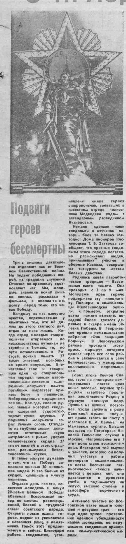 Подвиги героев бессмертны // Молодой ленинец. – 1979. – 9 мая. – С.4. – (Литературный отдел клуба).