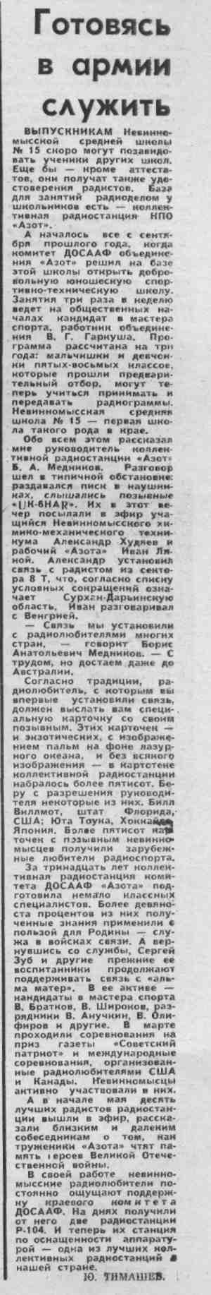 Тимашев, Ю. Готовясь в армии служить / Ю. Тимашев // Молодой ленинец. – 1979. – 6 июня.– С.3. – (Подвиги отцов – крылья сыновей).