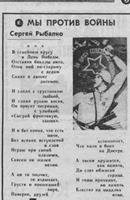 Рыбалко, С. Мы против войны : [стихотворение] / С. Рыбалко // Молодой ленинец. – 1979. – 22 июня.– С.3.