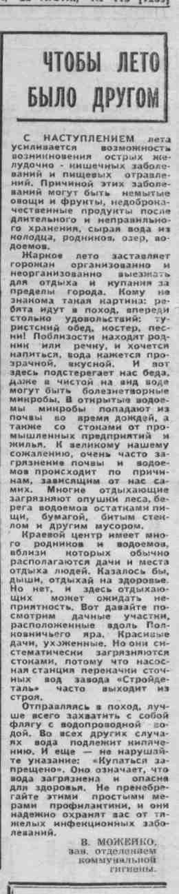 Можейко, В. Чтобы лето было другим / В. Можейко // Молодой ленинец. – 1979. – 22 июня.– С.4. – (Мир живой и удивительный).