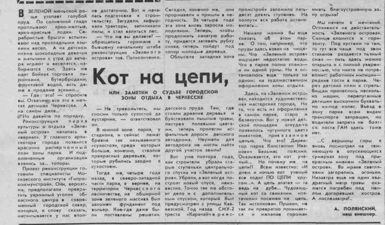 Полянский, А. Кот на цепи… / А. Полянский // Молодой ленинец. – 1979. – 22 июня.– С.4. – (Мир живой и удивительный).