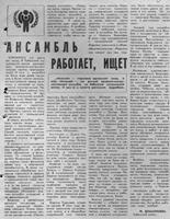 Думанишева, Ж. Ансамбль работает, ищет / Ж. Думанишева // Молодой ленинец. – 1979. – 20 июля. – С.3.