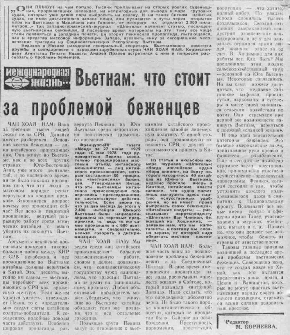 Корнеева, М. Вьетнам: что стоит за проблемой беженцев / М. Корнеева // Молодой ленинец. – 1979. – 25 июля. – С.4. - (Международная жизнь).