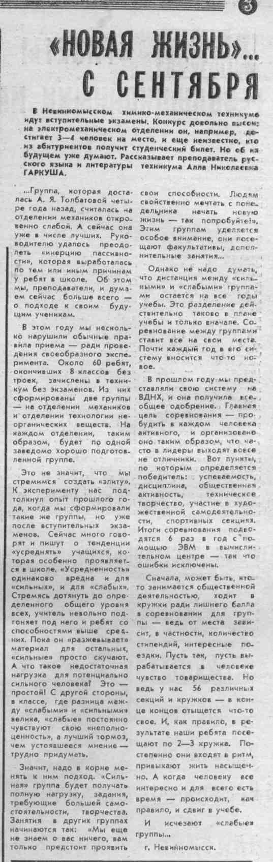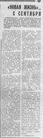 «Новая жизнь»... с сентября // Молодой ленинец. – 1979. – 3 авг. – С.3.