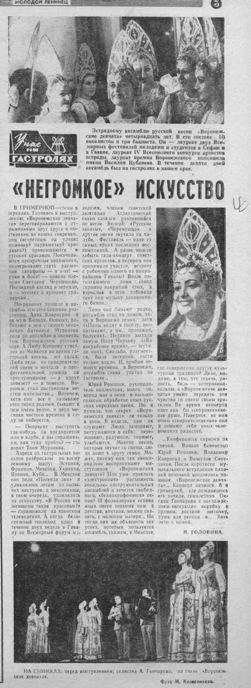 Головина, И. «Негромкое» искусство / И. Головина // Молодой ленинец. – 1979. – 4 авг. – С.3. - (У нас на гастролях).