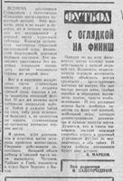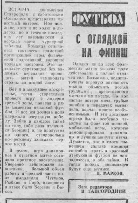 Марков, В. С оглядкой на финиш / В. Марков // Молодой ленинец. – 1979. – 25 авг. – С.4. - (Футбол).