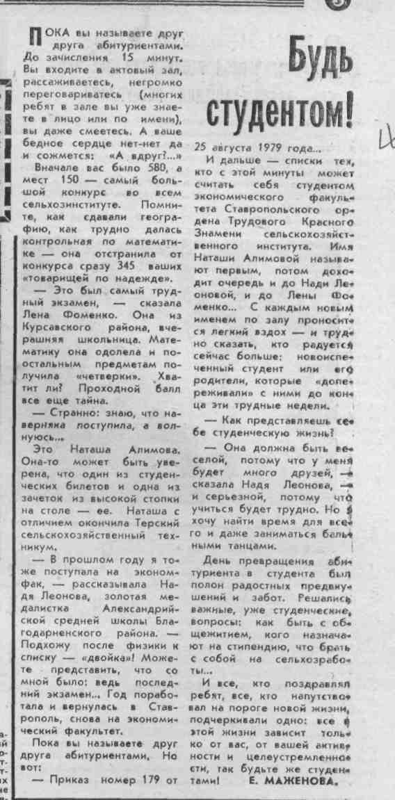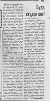 Будь студентом! // Молодой ленинец. – 1979. – 1 сент. – С.3. - (Сегодня - день знаний).