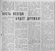 Пусть всегда будет дружба! // Молодой ленинец. – 1979. – 4 сент. – С.4.