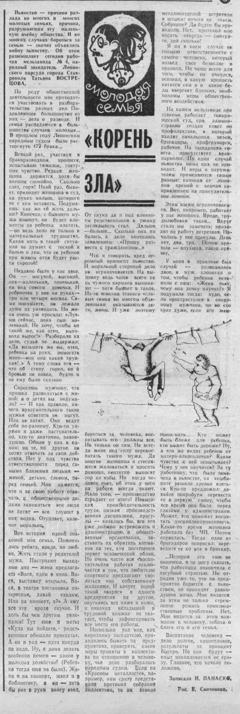 Панаско, Е. «Корень зла» / Е. Панаско // Молодой ленинец. – 1979. – 5 сент. – С.3. - (Молодая семья).