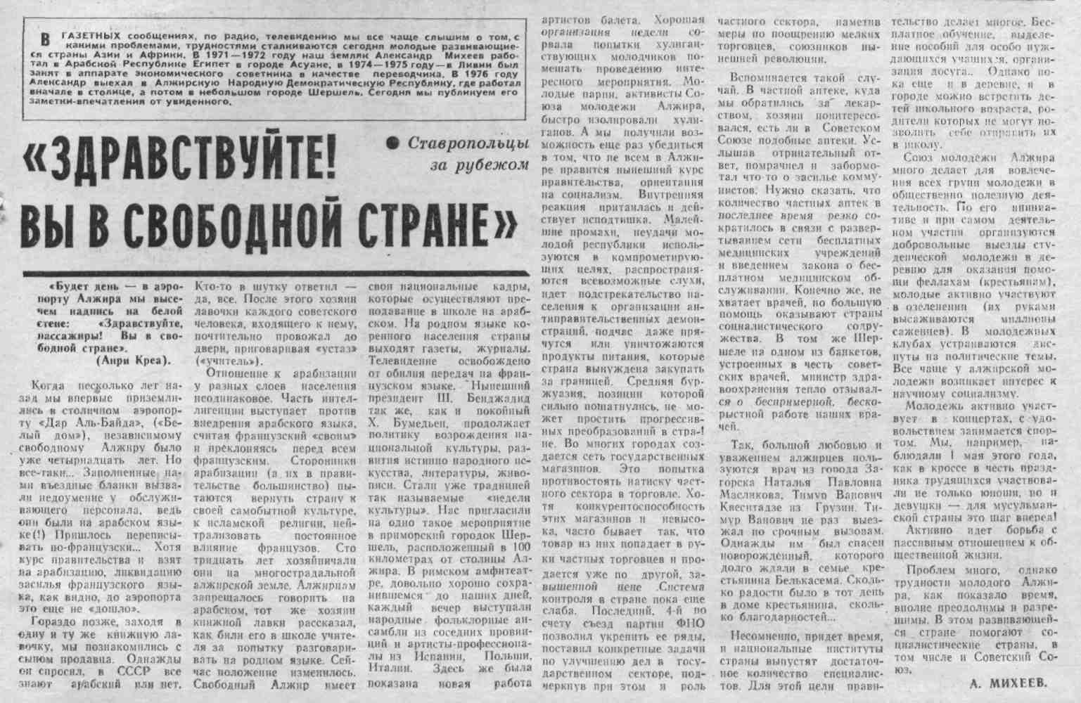 Михеев, А. Здравствуйте! Вы в свободной стране / А. Михеев // Молодой ленинец. – 1979. – 20 сент.– С.3.
