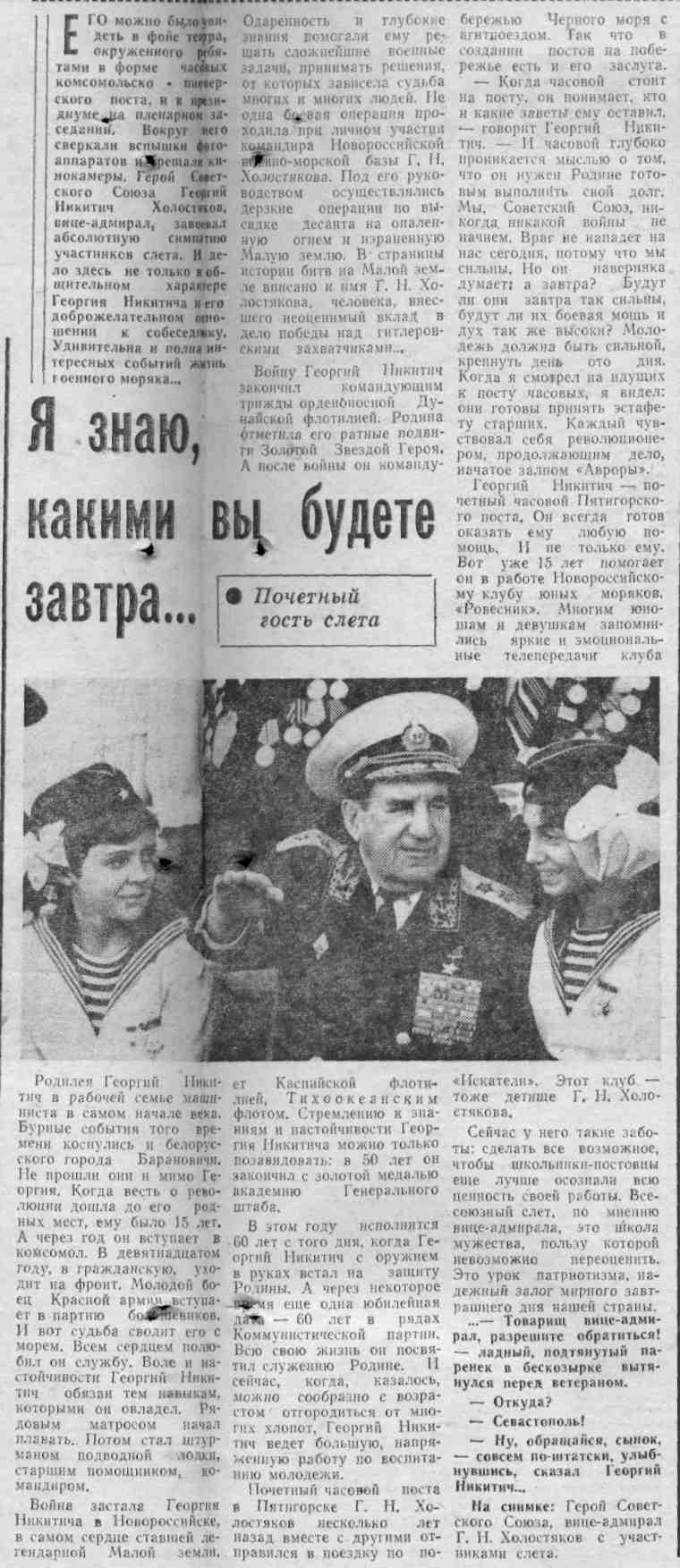 Я знаю, какими вы будете завтра... // Молодой ленинец. – 1979. – 25 сент.– С.3.