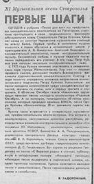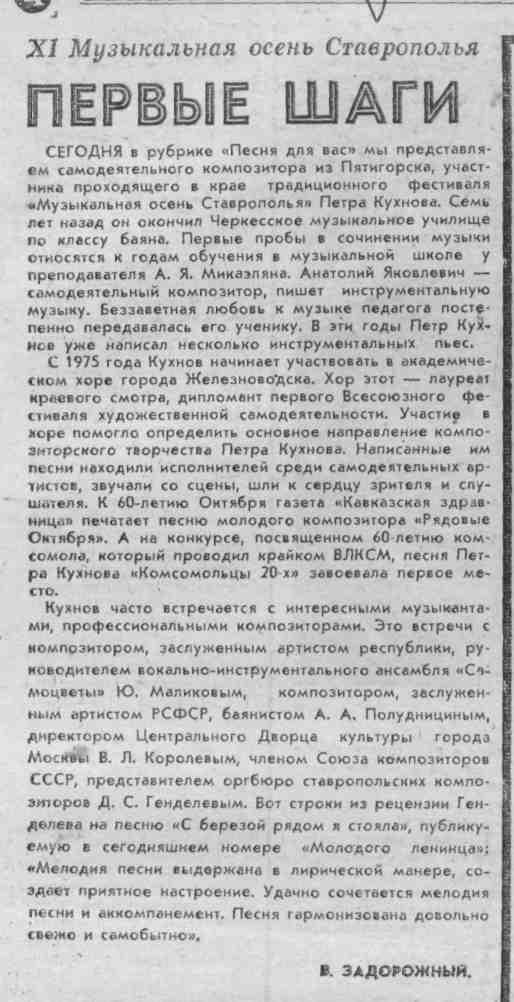 Задорожный, В. Первые шаги / В. Задорожный // Молодой ленинец. – 1979. – 6 окт.– С.4. - (Музыкальная осень Ставрополья).