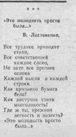 Нефедов, Е. Все труднее приходят стихи : [стихотворение] / Е. Нефедов // Молодой ленинец. – 1979. – 20 окт.– С.3.