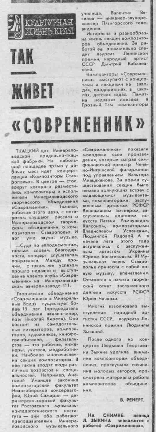 Ренерт, В. Так живет «Современник» / В. Ренерт // Молодой ленинец. – 1979. – 29 окт.– С.4. - (Культурная жизнь).