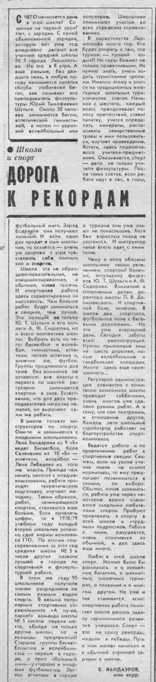 Кандауров, С. Дорога к рекордам / С. Кандауров // Молодой ленинец. – 1979. – 7 нояб.– С.4. - (Школа и спорт).