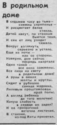 Прайсман, Л. В родильном доме : [стихотворение] / Л. Прайсман // Молодой ленинец. – 1979. – 15 нояб.– С.3. - (Литературный отдел клуба).