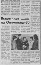 Ачкасов, А. Встретимся на олимпиаде – 80 / А. Ачкасов / Молодой ленинец. – 1979. – 26 нояб.– С.3. - (Спорт).