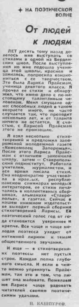 Кашпуров, И. От людей к людям / И. Кашпуров // Молодой ленинец. – 1979. – 7 апр. – С.3. – (На поэтической волне).