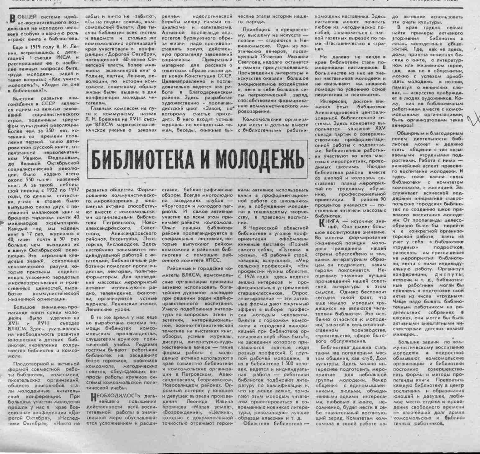 Библиотека и молодежь // Молодой ленинец. – 1979. – 27 апр. – С.3. – (Литературоведение).