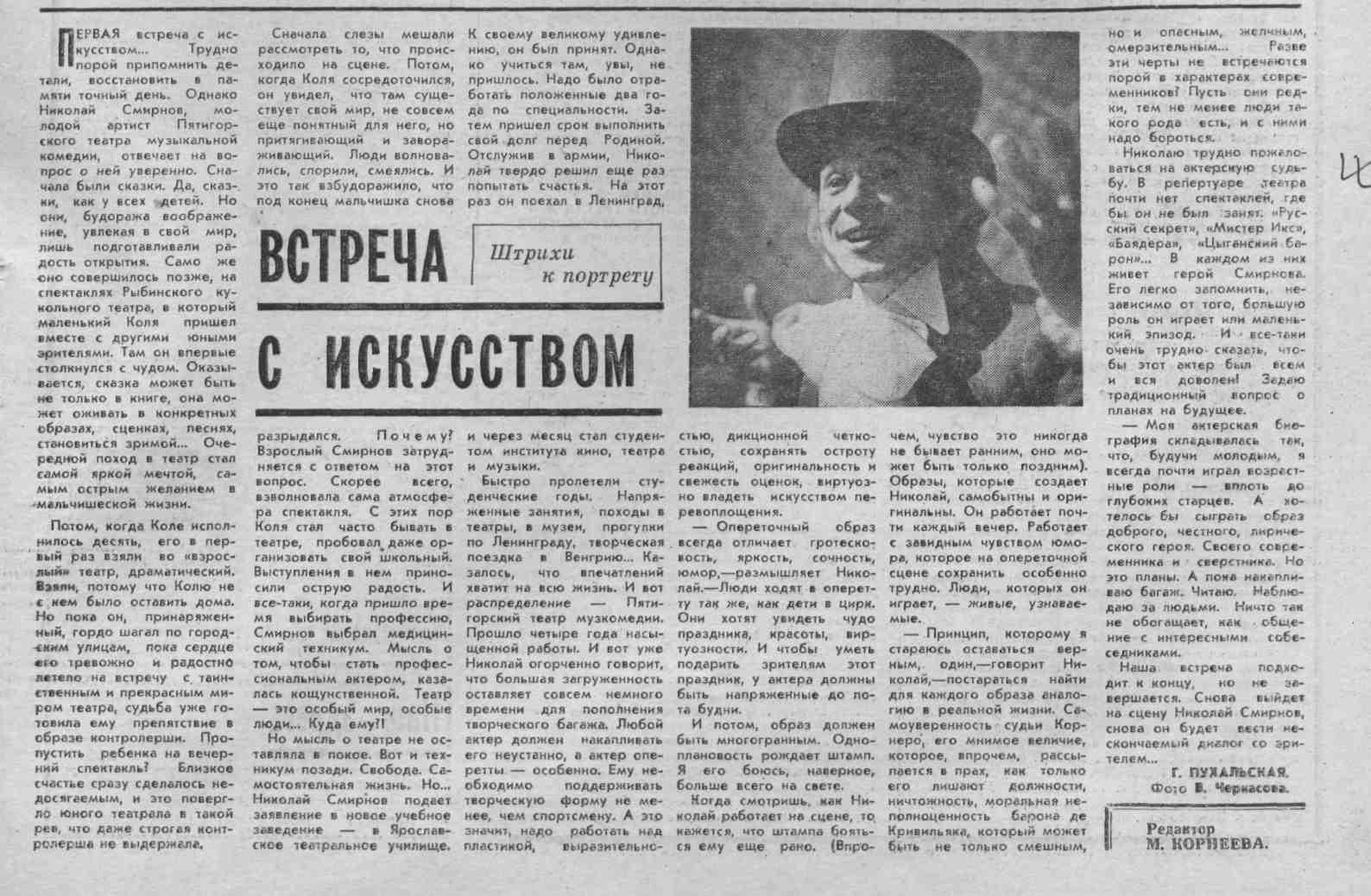 Пухальская, Г. Встреча с искусством / Г. Пухальская // Молодой ленинец. – 1979. – 8 июня.– С.3. – (Штрихи к портрету).
