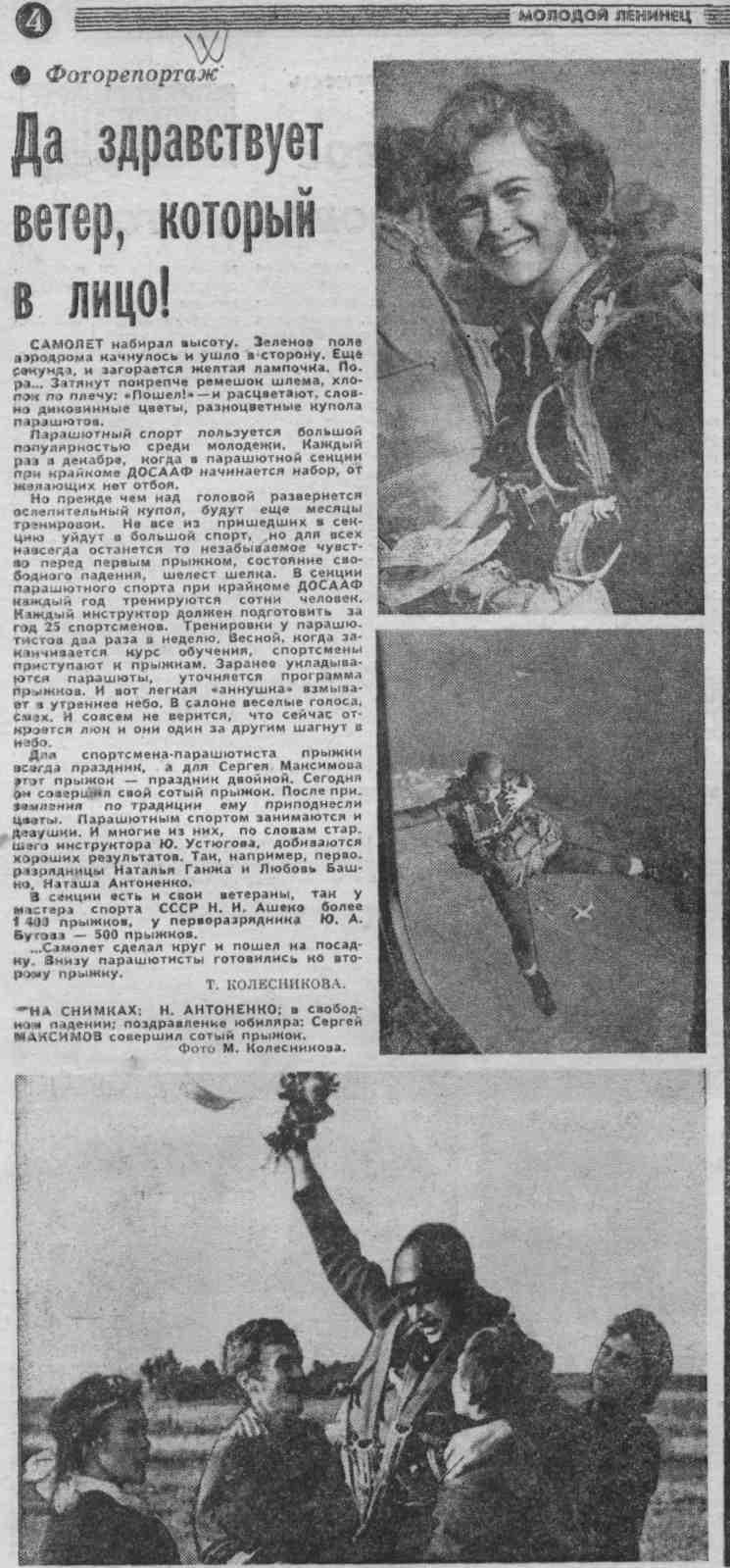 Колесникова, Т. Да здравствует ветер, который в лицо! / Т. Колесникова // Молодой ленинец. – 1979. – 29 июля. – С.4. - (Фоторепортаж).