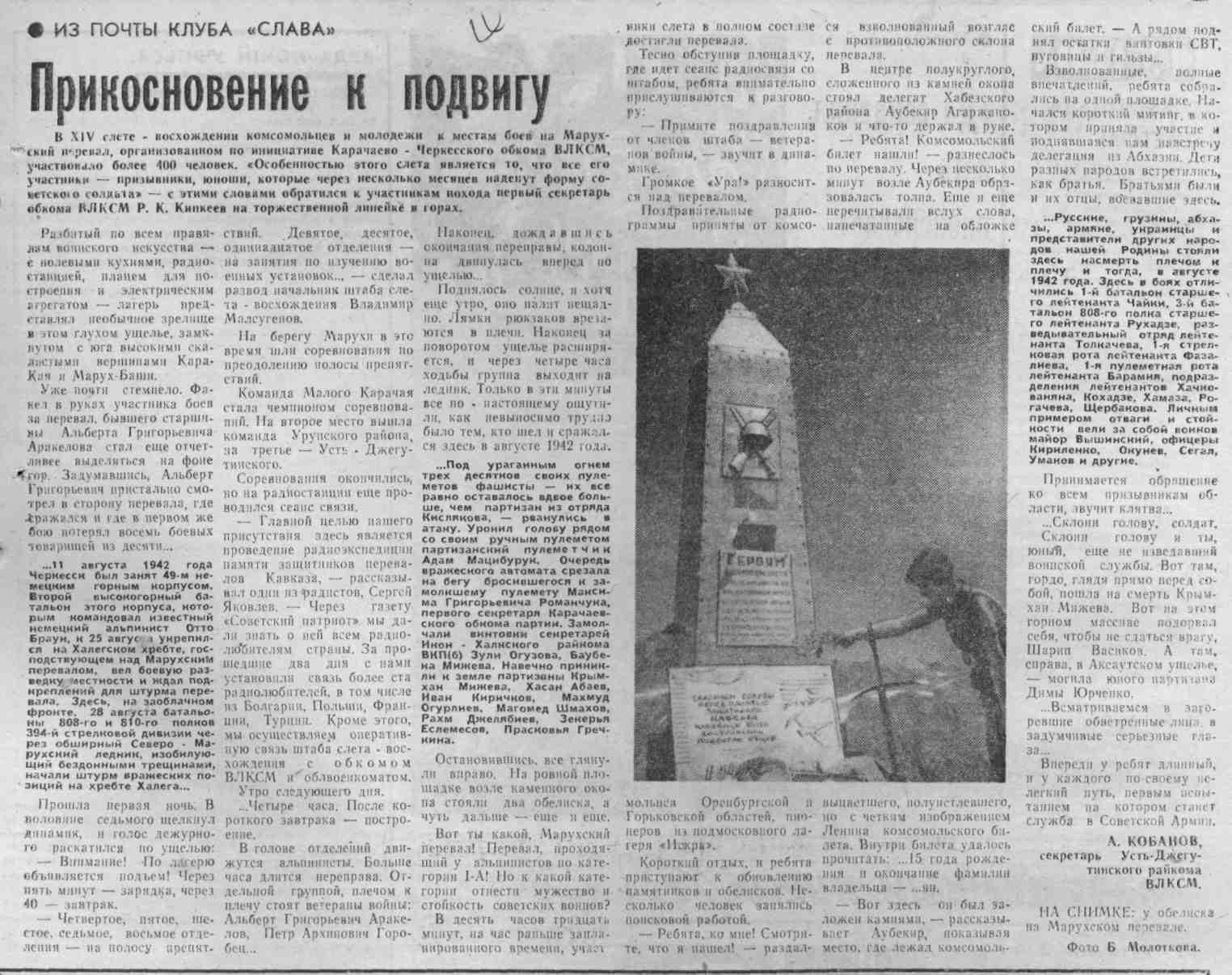 Кобанов, А. Прикосновение к подвигу / А. Кобанов // Молодой ленинец. – 1979. – 24 авг. – С.3. - (Из почты клуба «Слава»).