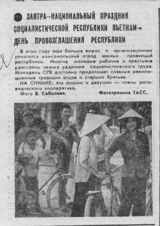 День провозглашения республики Вьетнам // Молодой ленинец. – 1979. – 1 сент. – С.3.